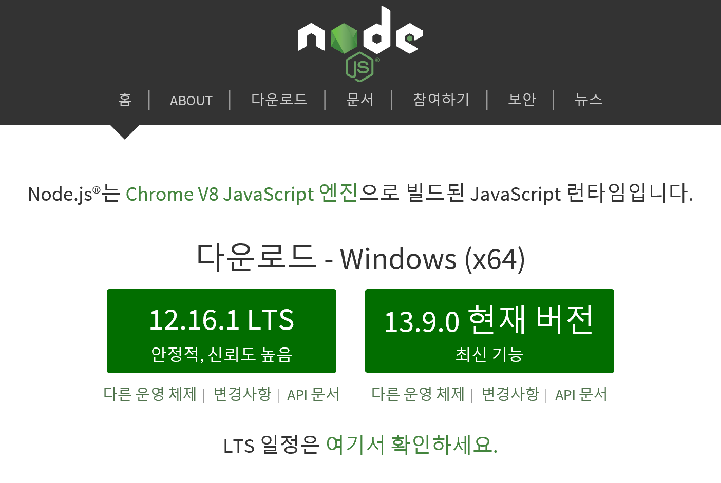 윈도우 환경에서 node.js 설치 하는 방법입니다.