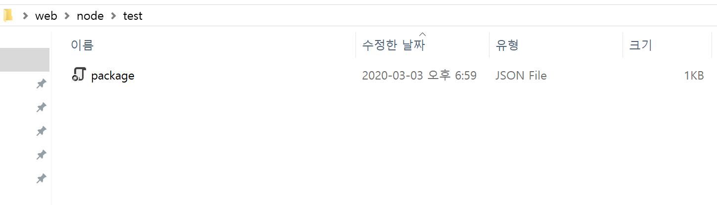 node.js를 테스트 하고자 하는 폴더를 하나 생성하여 줍니다.
