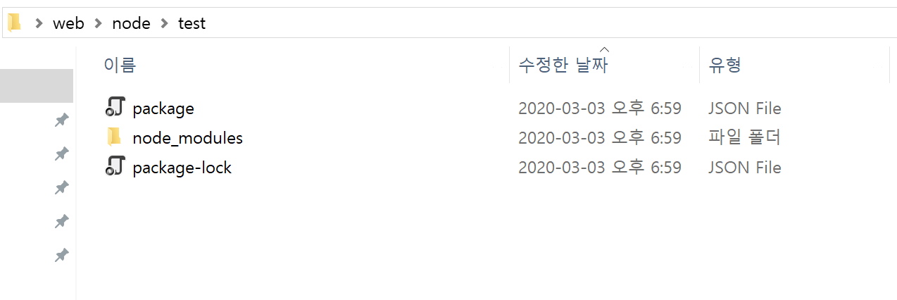 ex)cd Desktop/web/node3-1 package.json파일 초기화