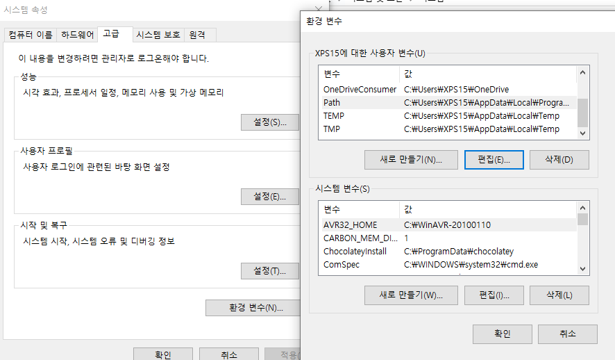 - 고급 시스템 설정 - 시스템 속성 - 환경변수 - path 편집을 통해 경로를 입력해준다.