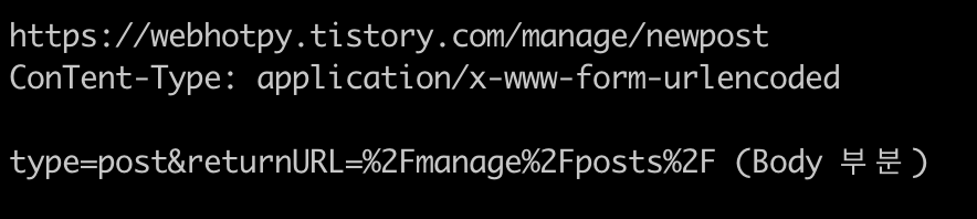 GET에서 URI에 포함시켰던 파라미터들을 메세지의 바디에 넣는다.